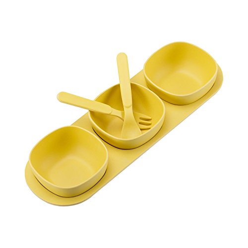 -. Feature : ♥ MODERN COLOR - The modern color of this product can suit your home décor style in every way. / ♥ 100% ECO-FRIENDLY - Made of 100% Bamboo Fiber & Natural, BPA-FREE and DEGRADABLE, Safe and Well-Designed, a perfect reusable product for baby feeding / ♥ MUTLI-PURPOSES - You can use it not only as baby feeding bowls, but also can use it as pinch bowls, or spice bowls. This product can also serve candies, nuts, and other snacks in different occasions, like parties.c / ♥ ALL-IN-ONE SET - Each set includes 6 pieces, 3 bowls, 1 tray, 1 Fork, and 1 spoon. It is a good deal for this P.R.Ice.