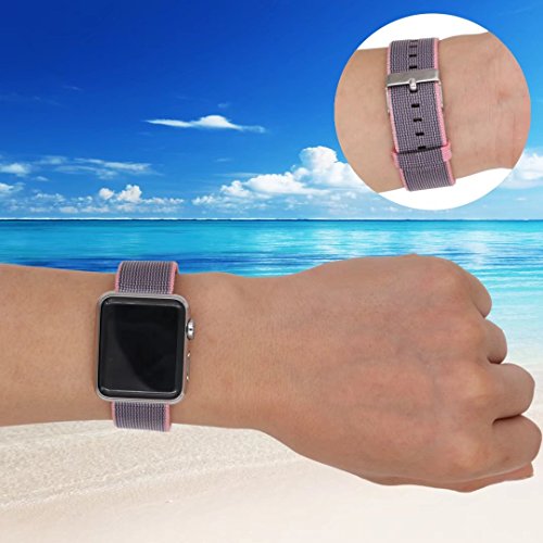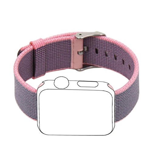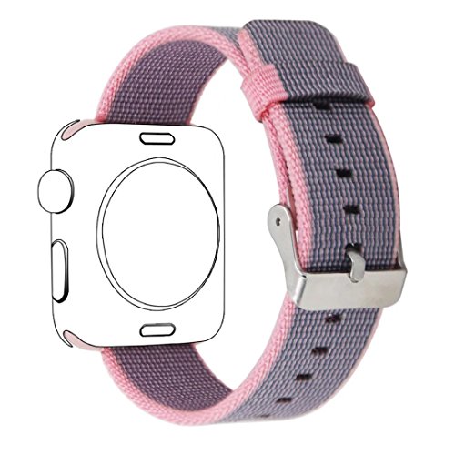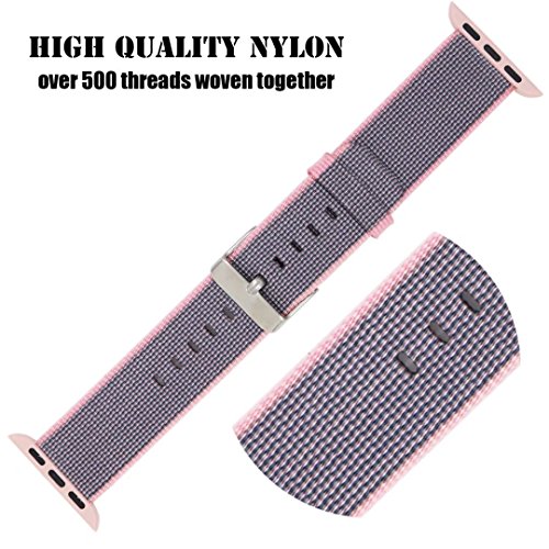 Yichan Woven Nylon Fabric Wrist Strap Replacement Band with Classic Square Stainless Steel Buckle for Apple Watch iWatch Series 1 / 2,Sport & Edition,38mm,Lightpink and Midnightblue