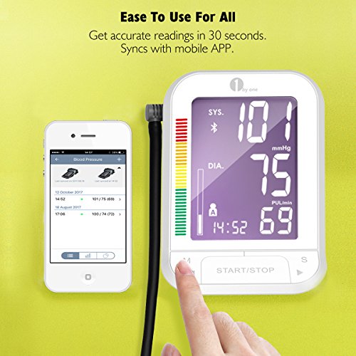 1byone Bluetooth Digital Blood Pressure Monitor with Large Easy-to-Read...