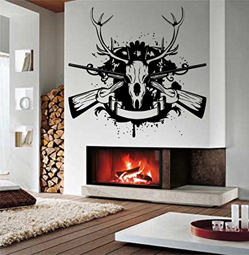 -. Title : Wall Vinyl Sticker Decals Mural Room Design Decor Pattern deer Skull Hunting Weapon Gun Hobby Horn mi387