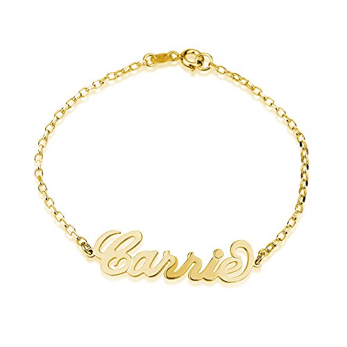 -. Binding : Jewelry -. Brand : Personalized Necklaces -. Department : womens -. Feature : Name bracelet personlaize with any name / Next, find this item in your Shopping Cart and select "Gift Options" / Type any name in the Gift Note box; it can be up to 12 character per bracelet / Material: 925 Sterling Silver plated in 18k Gold -. Model : 020091 -. ProductGroup : Jewelry -. ProductTypeName : FASHIONNECKLACEBRACELETANKLET -. Title : Name Bracelet , 925 Sterling Silver Plated in 18k Gold Initial Bracelet, Name Pendant