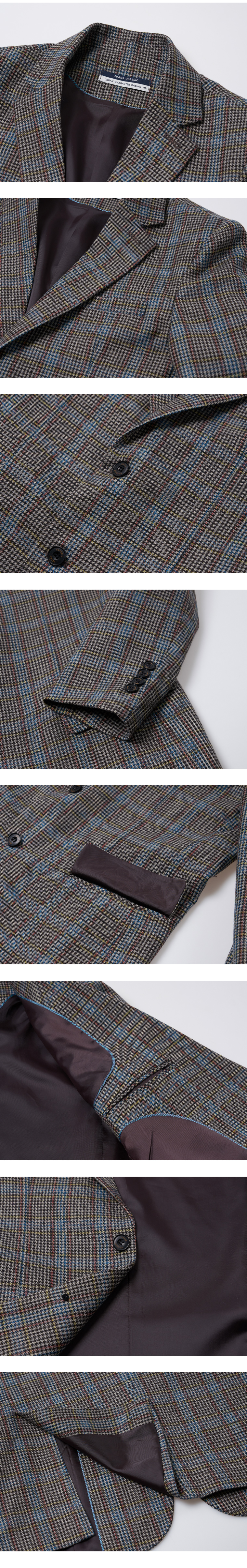 클래식함이 느껴지는 톤온톤체크패턴의 원단으로 제작한 울체크자켓입니다. 베이직한 라인의 디자인에 은은한 체크패턴의 트위드 조직이 매력적입니다. 고급 울블랜드원단으로 초겨울까지 단품으로 착용하기 좋고, 한겨울에는 루즈한 아우터와 함께 레이어드하시길 추천합니다. 블랙이나 그레이계열 슬랙스와 연출하기에 좋고, 데님팬츠나 치노팬츠와 연출하셔도 멋진룩을 연출하실 수 있습니다.