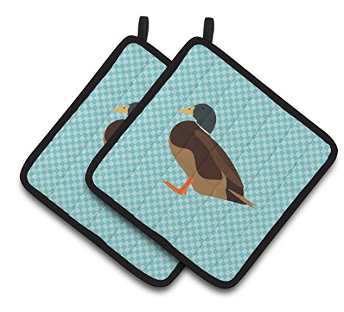 Caroline's Treasures BB8041PTHD Silver Bantam Duck Blue Check Decorated Pot Holder, 7.5" x 7.5", Multicolor