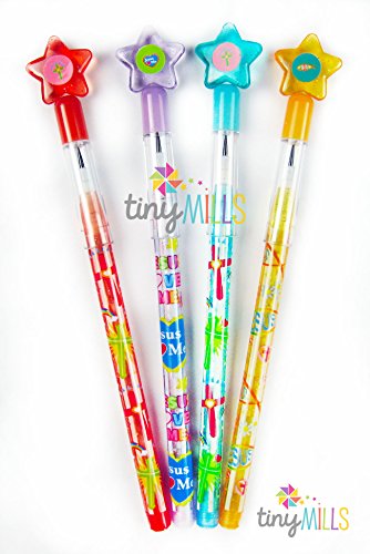 24 christian religious themed stacking pencils with non-sharpening leads.