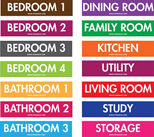 - 14 DIFFERENT, BRIGHT COLORS AND EASILY READABLE BOLD TEXT: The wide variety of bright colors, as well as the bold, easily readable text will allow you to easily identify boxes according to room while packing. From now on, moving will not be about spending long days trying to get everything organized.