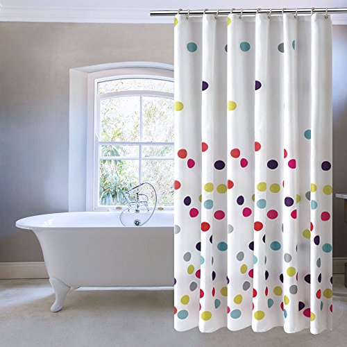 Ufriday Colorful Polka Dots Shower Curtain,Water-Repellent and Mildew-Resistant with Metal Grommets, Cute Pattern Bath Curtain for Kids Decorative, Multicolor on White, Standard Size 72 by 72