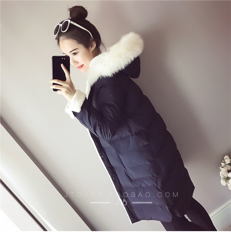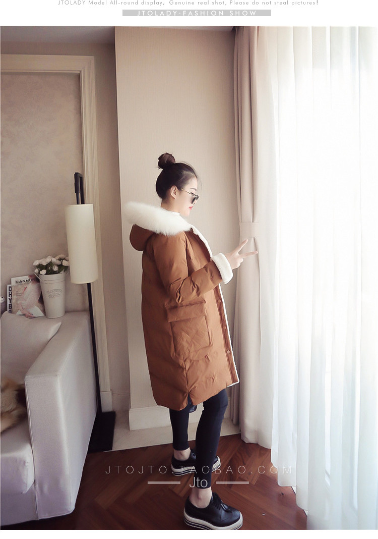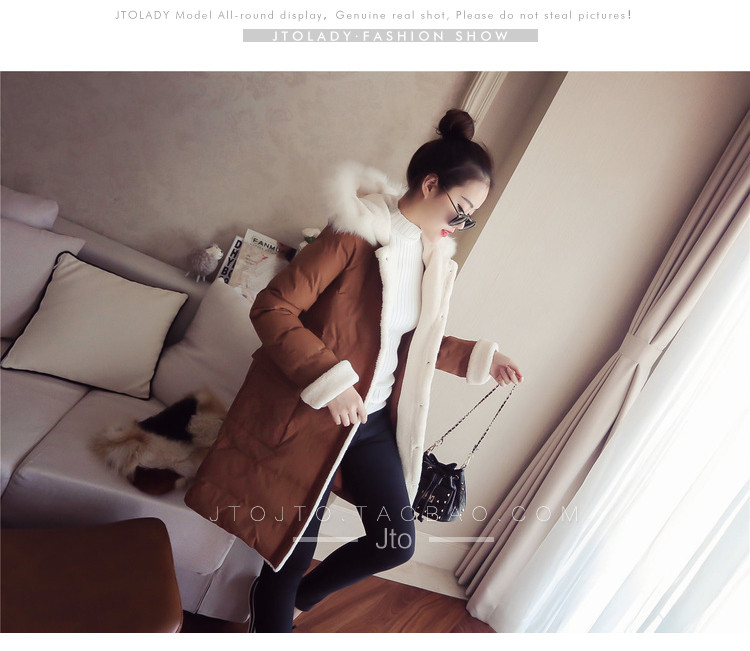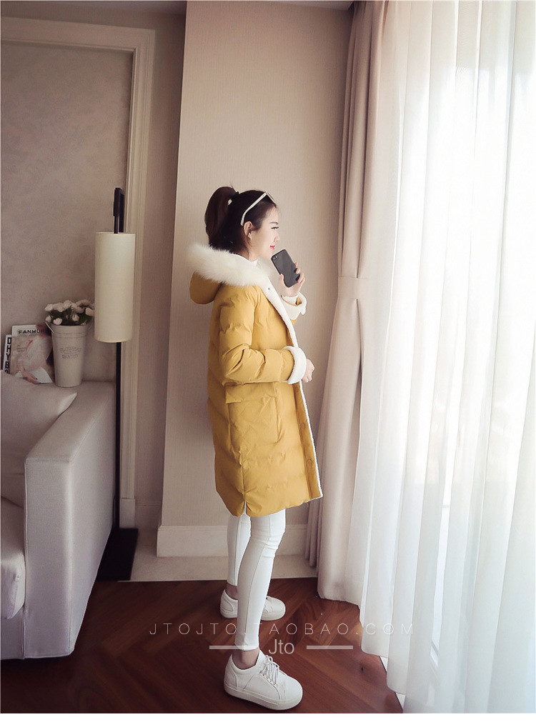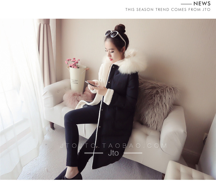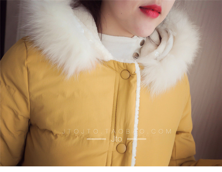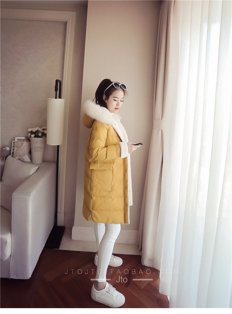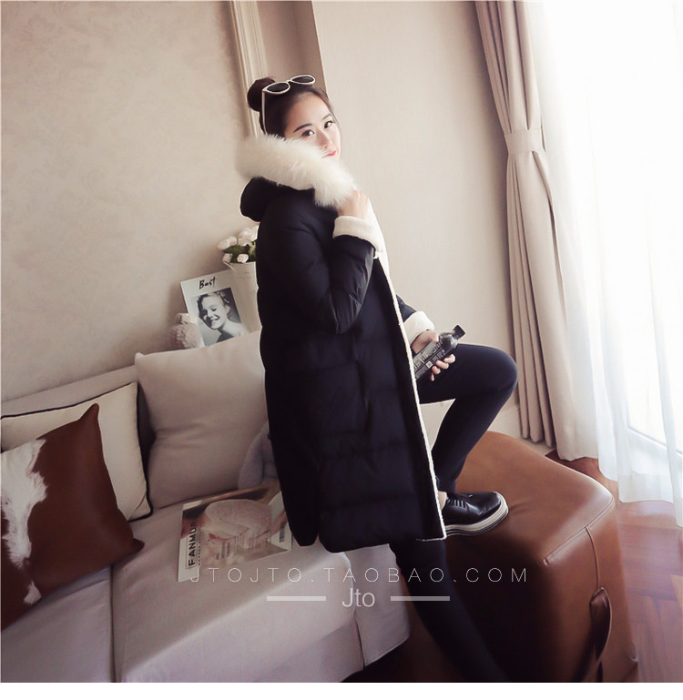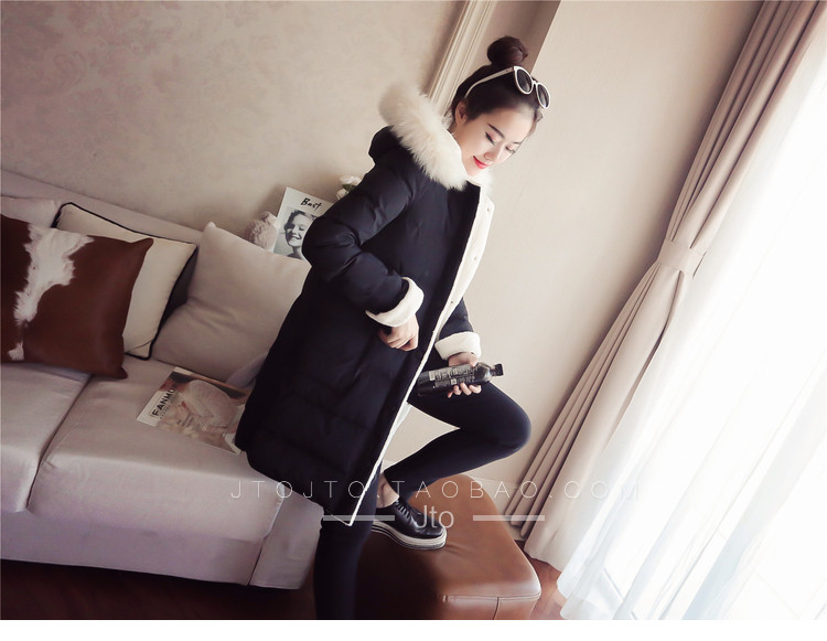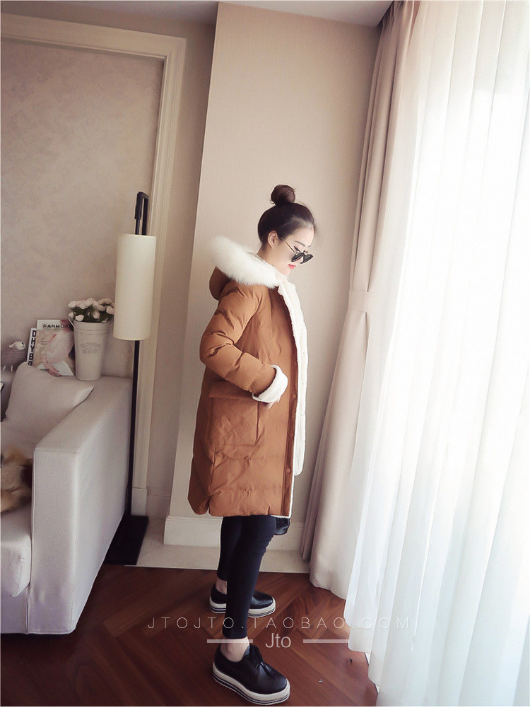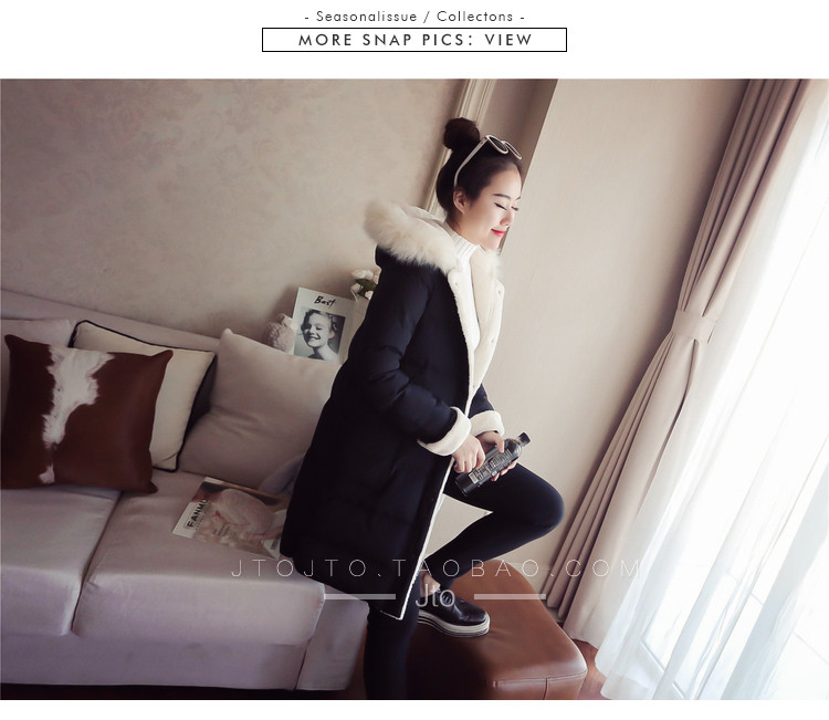 | Name. | 品名 - | 2017冬季新款韩版连帽狐狸毛领中长款棉衣拼接羊羔毛棉服女厚V546 |