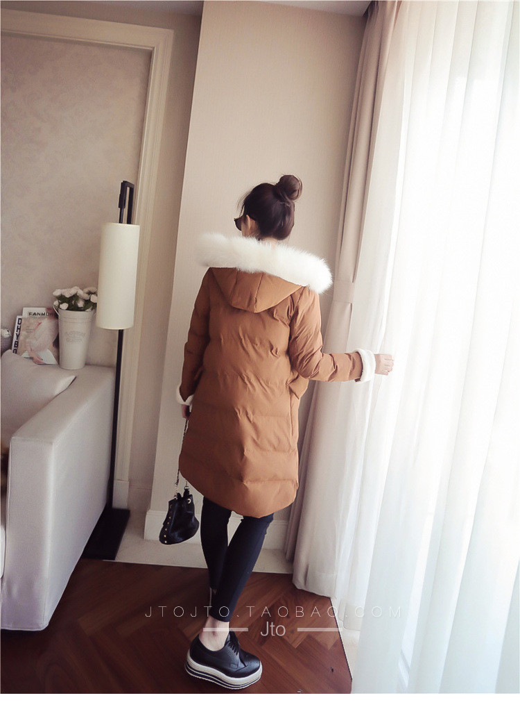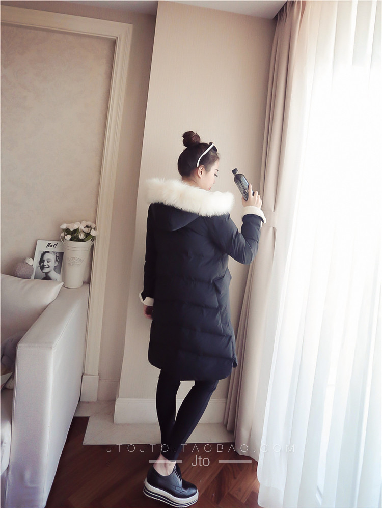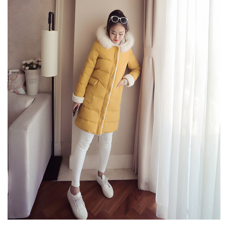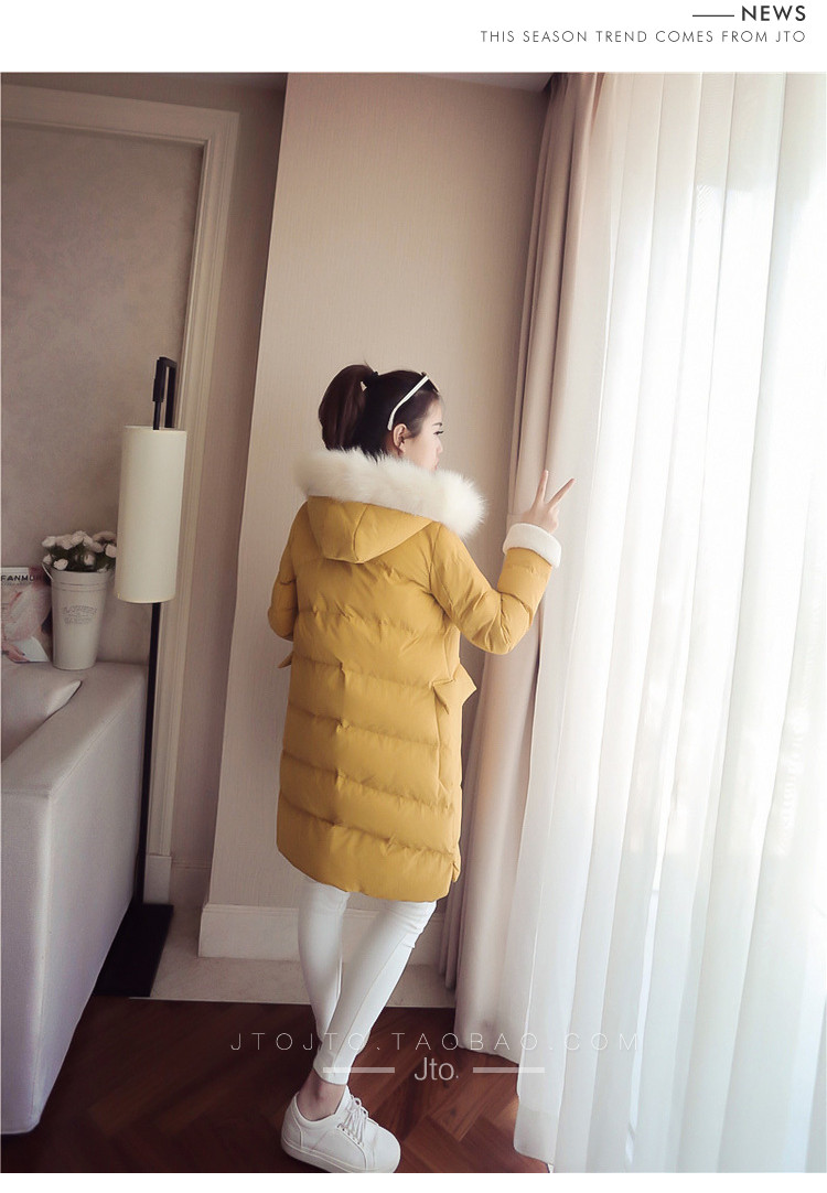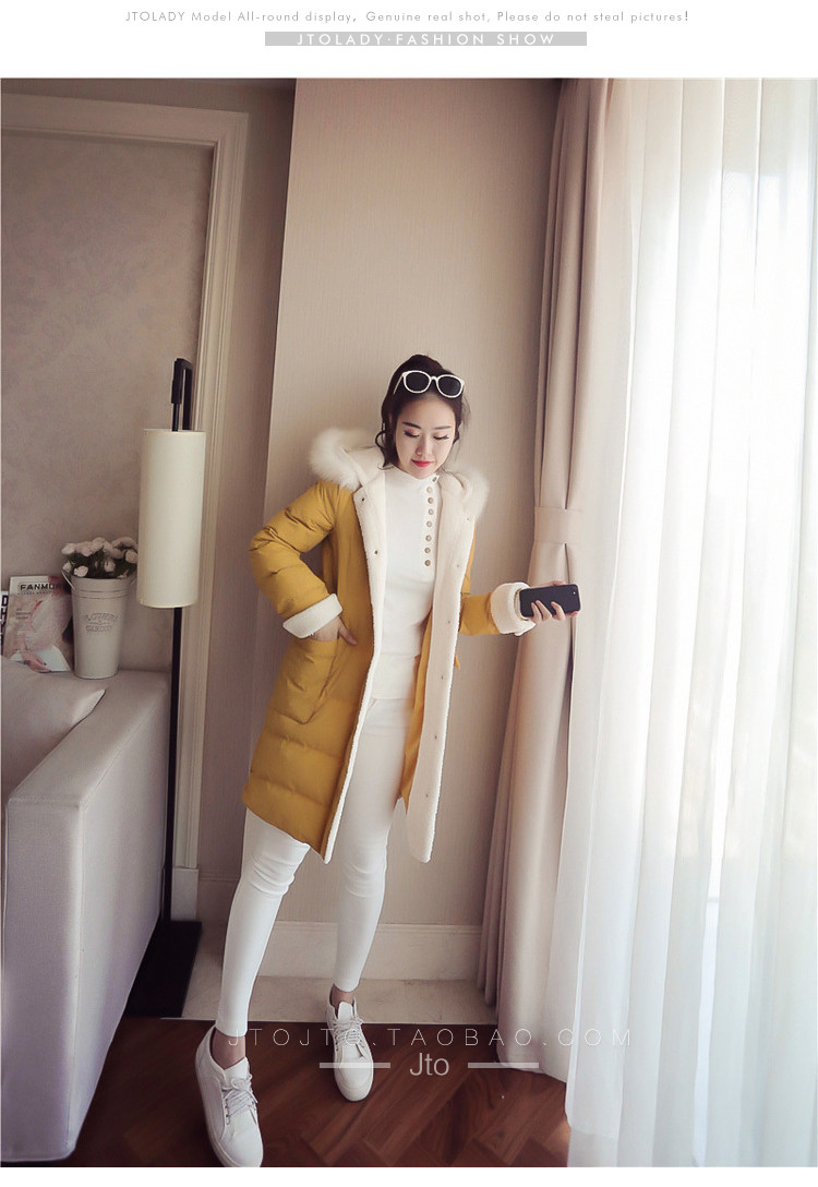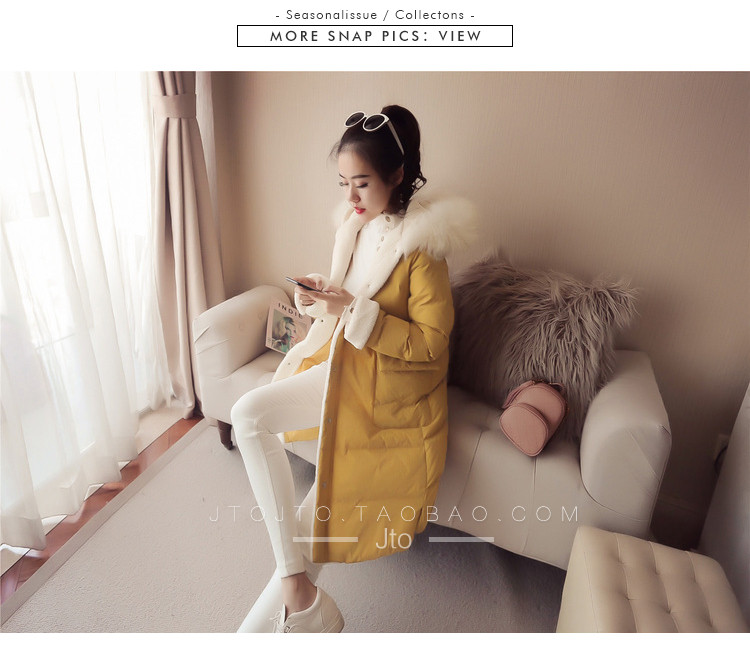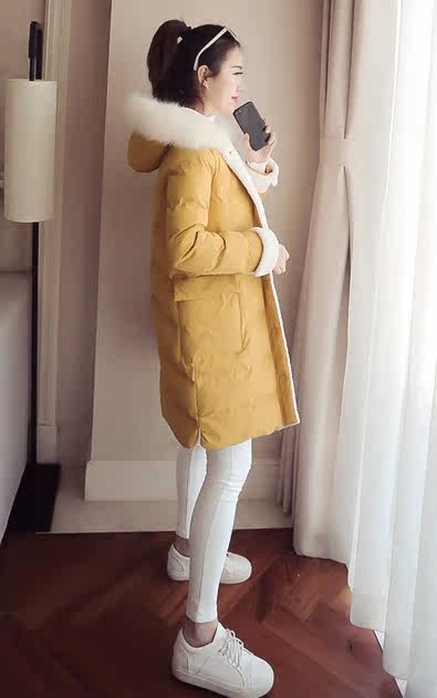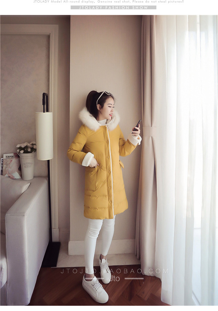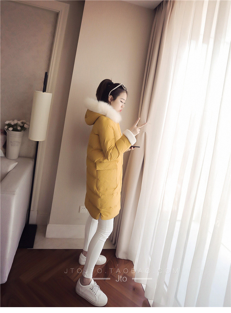 | Name. | 品名 - | 2017冬季新款韩版连帽狐狸毛领中长款棉衣拼接羊羔毛棉服女厚V546 |