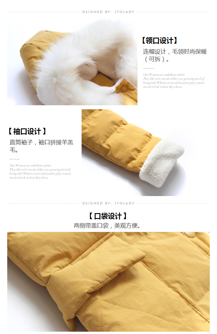 PS:毛领可拆 袖口可翻边 两侧口袋 下摆两侧开叉 手塞棉