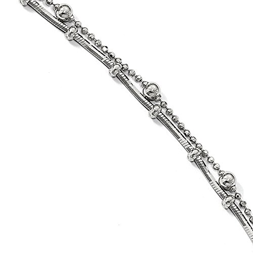 Black Bow Jewelry Sterling Silver Double Strand Fancy Beaded Anklet, 9-9.5 Inch