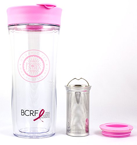 Portable Travel Tea Tumbler - Double Walled w/ Removable Steel Infuser, Clear-Pink 14 Fluid Ounces by Pride Of India