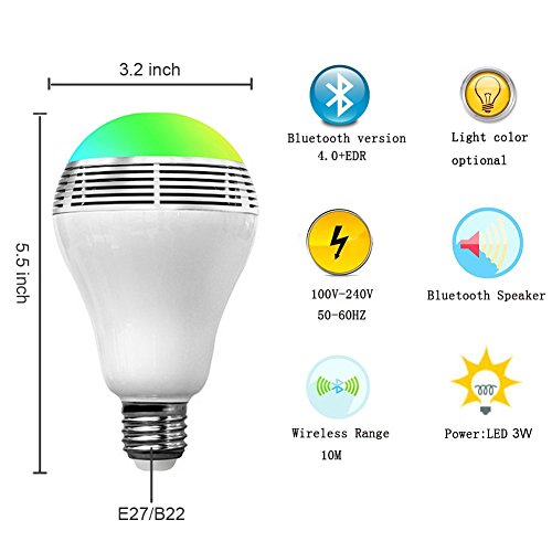 ZONV Bluetooth Light Bulb is a Bluetooth enabled, multicolored, energy efficient smart LED light bulb that you can control with your Smartphone or tablet.