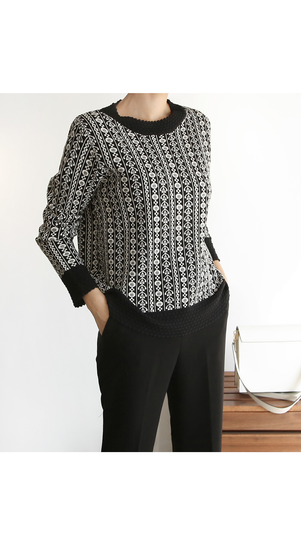 독특한 패턴과 짜임이 돋보이는 니트웨어입니다