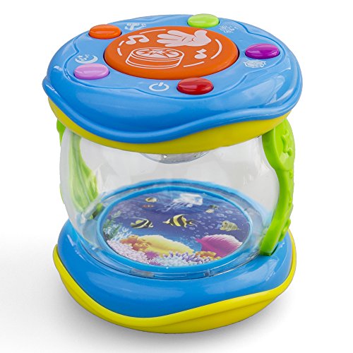 -. Title : Tiny Toddlers Musical Drum With Lights, Ocean Sounds, And Lullaby Songs Small Take Along Baby Entertaining Toy For Your Stroller And Car