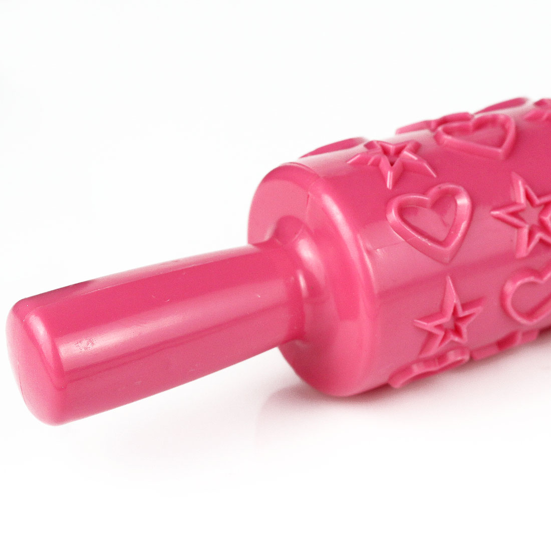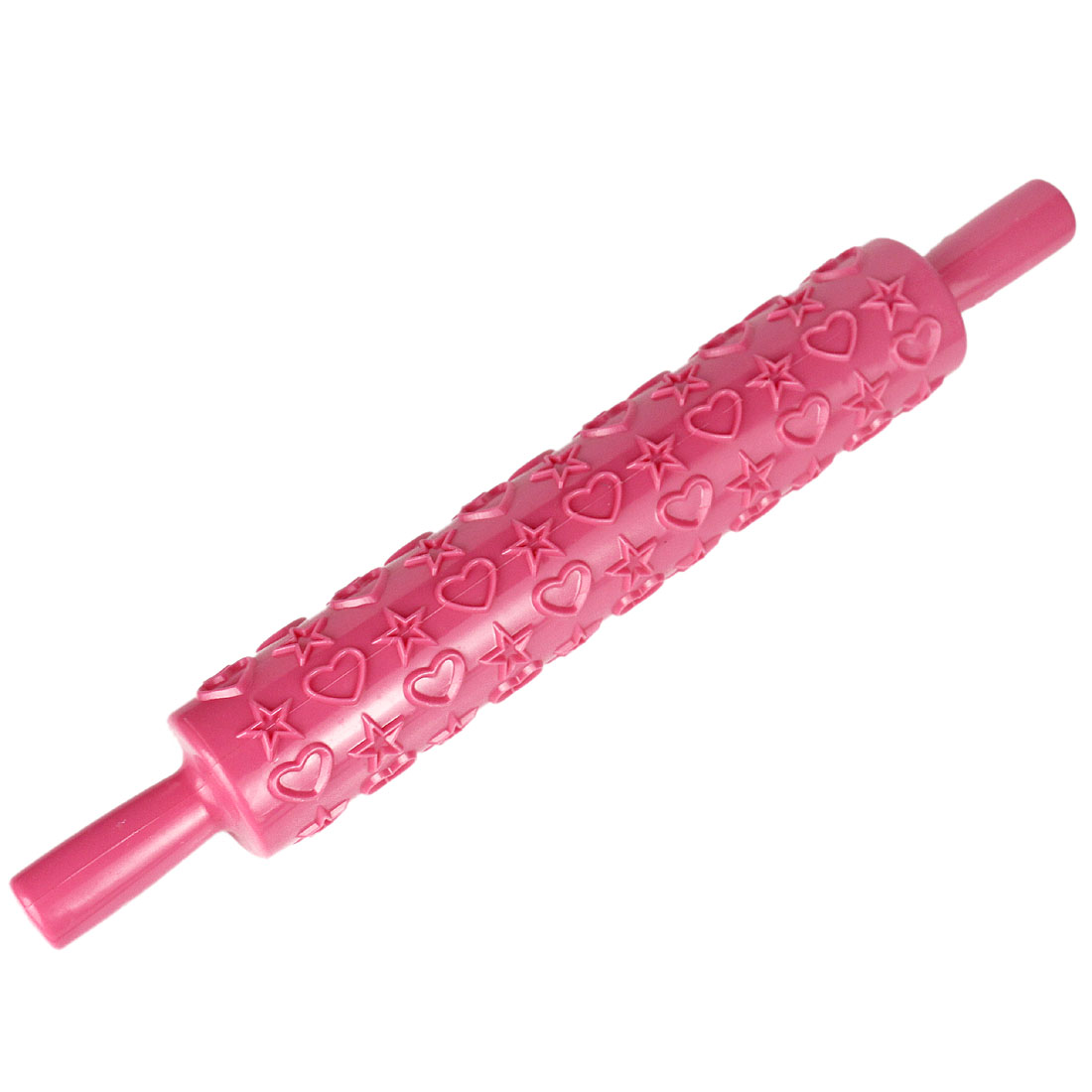 Roll out fondant with a smooth rolling pin and once rolled out the patterde rolling pin to imprint design