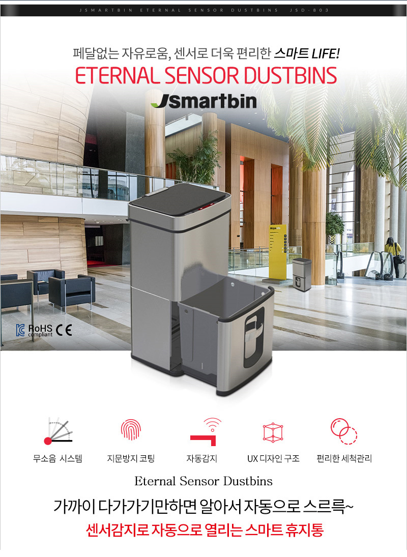 Large capacity Smart Trash Can JSD-803 75L municipal silver warehouse Open Noiseless