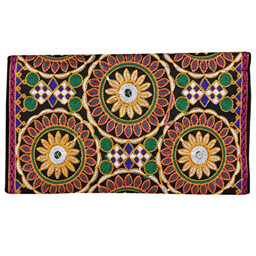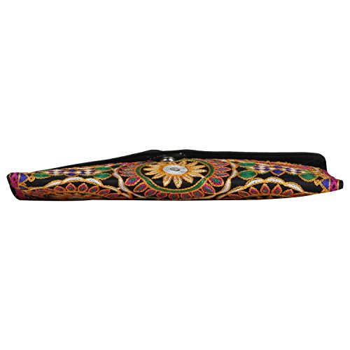 -. Title : Ethnic Embroidered Hadmade Banjara foldover Clutch Purse-Sling Bag-Cross Body Bag- Black wd MultiColor