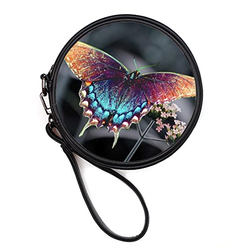 JIUDUIDODO Custom Pretty Butterfly PU Leather Round Makeup Bag Handbag Bag for Cash Credit Card Coins