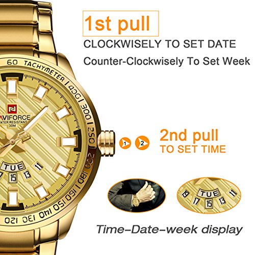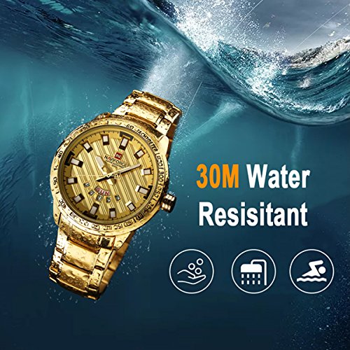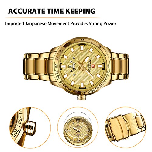 -. Title : Men Gold Plated Analog Quartz Waterproof Stainless Steel Wrist Watch with Classic Design Calendar