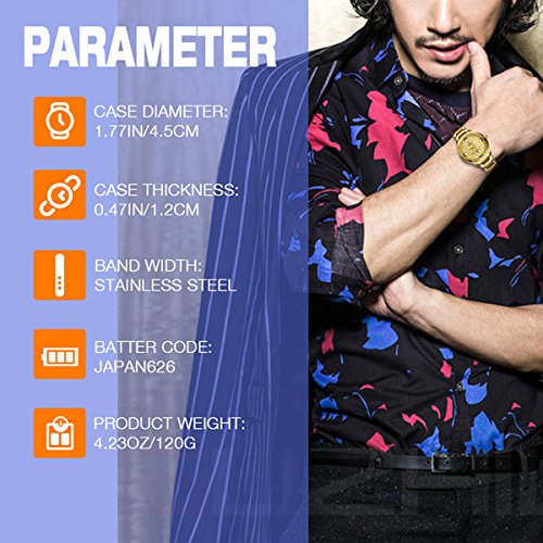 -. Feature : Japanese quartz movement,Keep Perfect Time,Accuracy:+/- 30 seconds per month,Battery life :2 years / Stainless steel watch featuring luminous hands with date and day function. / IPS Plated Stainless Steel Strap and Case ,Never Fade away during using. / Size: Diameter:47.5mm,Thickness:13.5mm,High Quality Casual Elegant Wristwatch for Men. / Water resistant to 30m:in general ,withstands splashes or brief immersion in water ,but not suitable for swimming or bathing.
