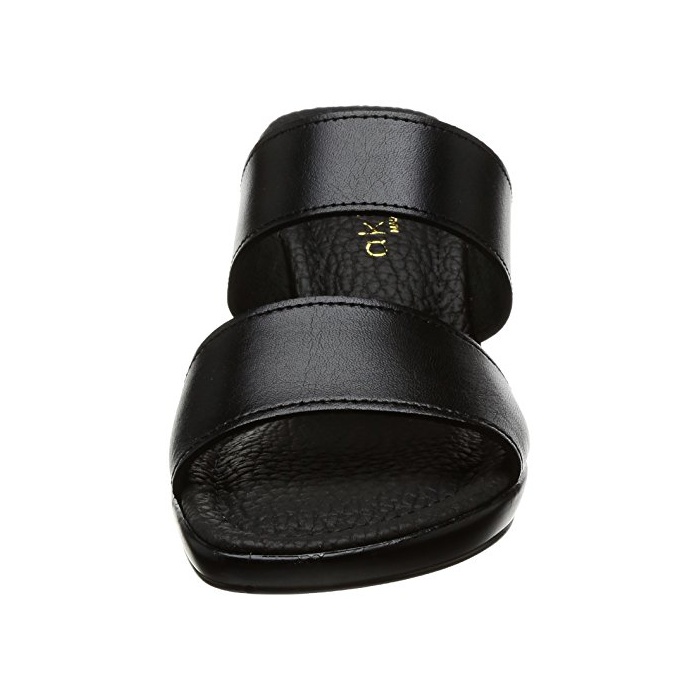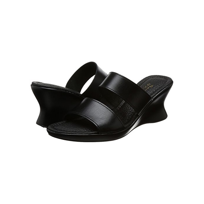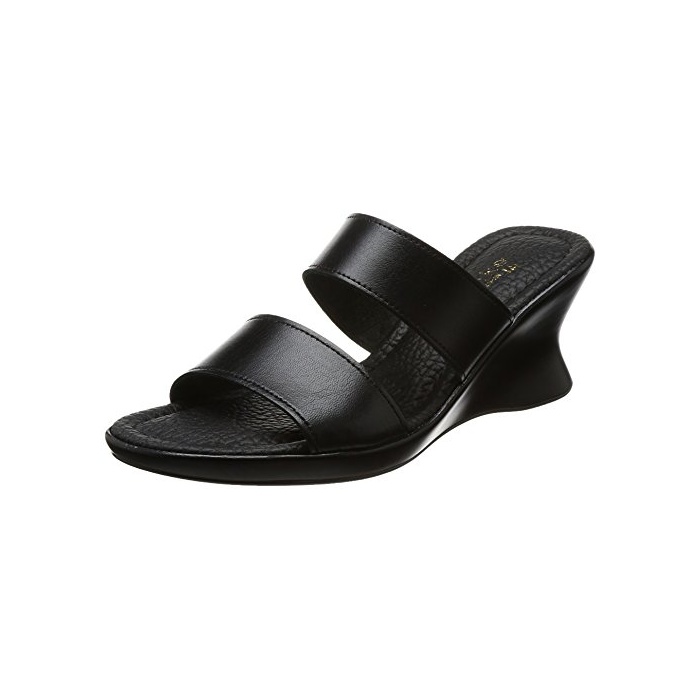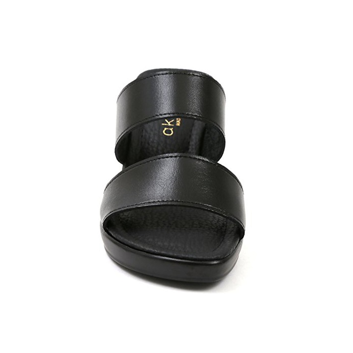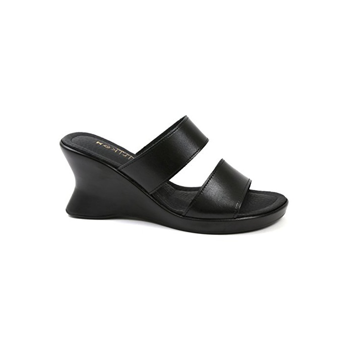 Akiriko [아키 re《고》] akiriko 일본 제본 가죽 더블 벨트 심플 블랙 웨지(wedge) 솔 오피스리 와 뮬 샌들 bl-l