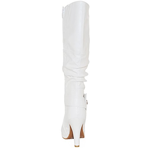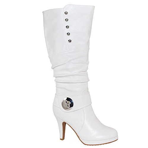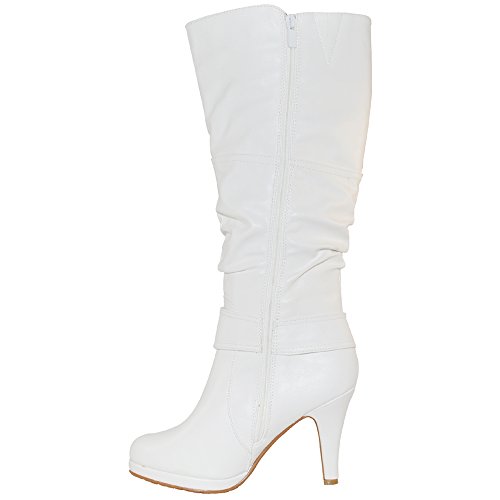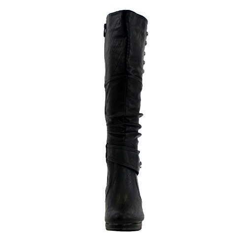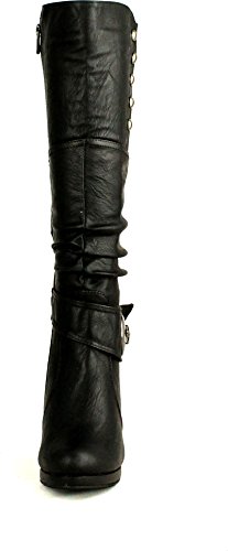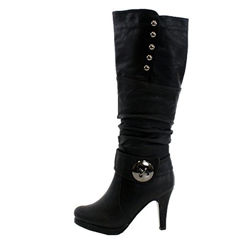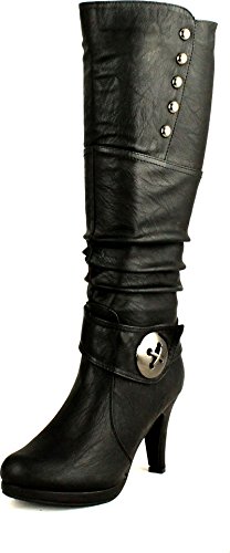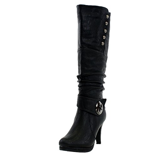 Top Moda Womens Win-45 Knee High Round Toe Slouched High Heel Boots