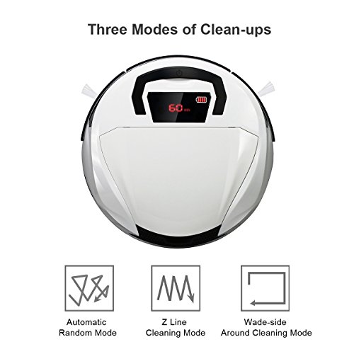 SMART SENSOR and CLEANING MODES: This smart robotic vacuum cleaner is with 4 intelligent cleaning modes: Straight line; Along the wall cleaning; 'Z' line cleaning; Free cleaning. It comes with two sides corner brushes,the cleaning ability is up to 98% efficiency, kindly clean the filter often in order to keep good filtration performance. Drop-Sensing helps avoid dropping off stairs, Anti-bump technology protects this vacuum robot and home furniture.