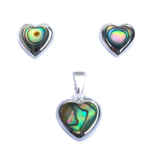 -. Title : Simulated Abalone Shell Heart .925 Sterling Silver Earring & Pendant Jewelry set