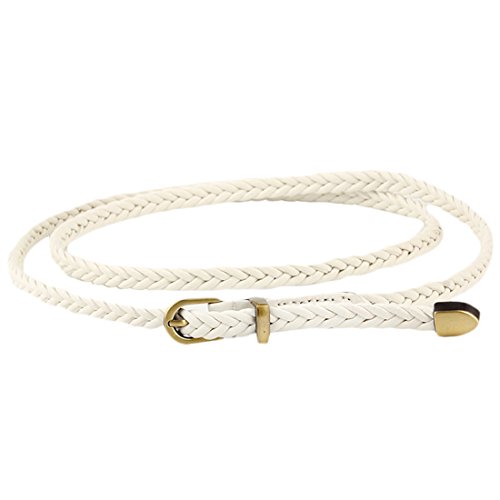 The slender woven leather belt with single alloy prong buckle features metal keeper and arrow tail. The comfortable belt is adjustable to its maximum, you can adjust it exactly in your size to fit you. It has perfect texture to go with a fluffy sweater or dress! Also great for those casual pants or jeans days in the office! Suitable for office, party, college, date and everyday wear, it is undoubtedly a great addition to your wardrobe.