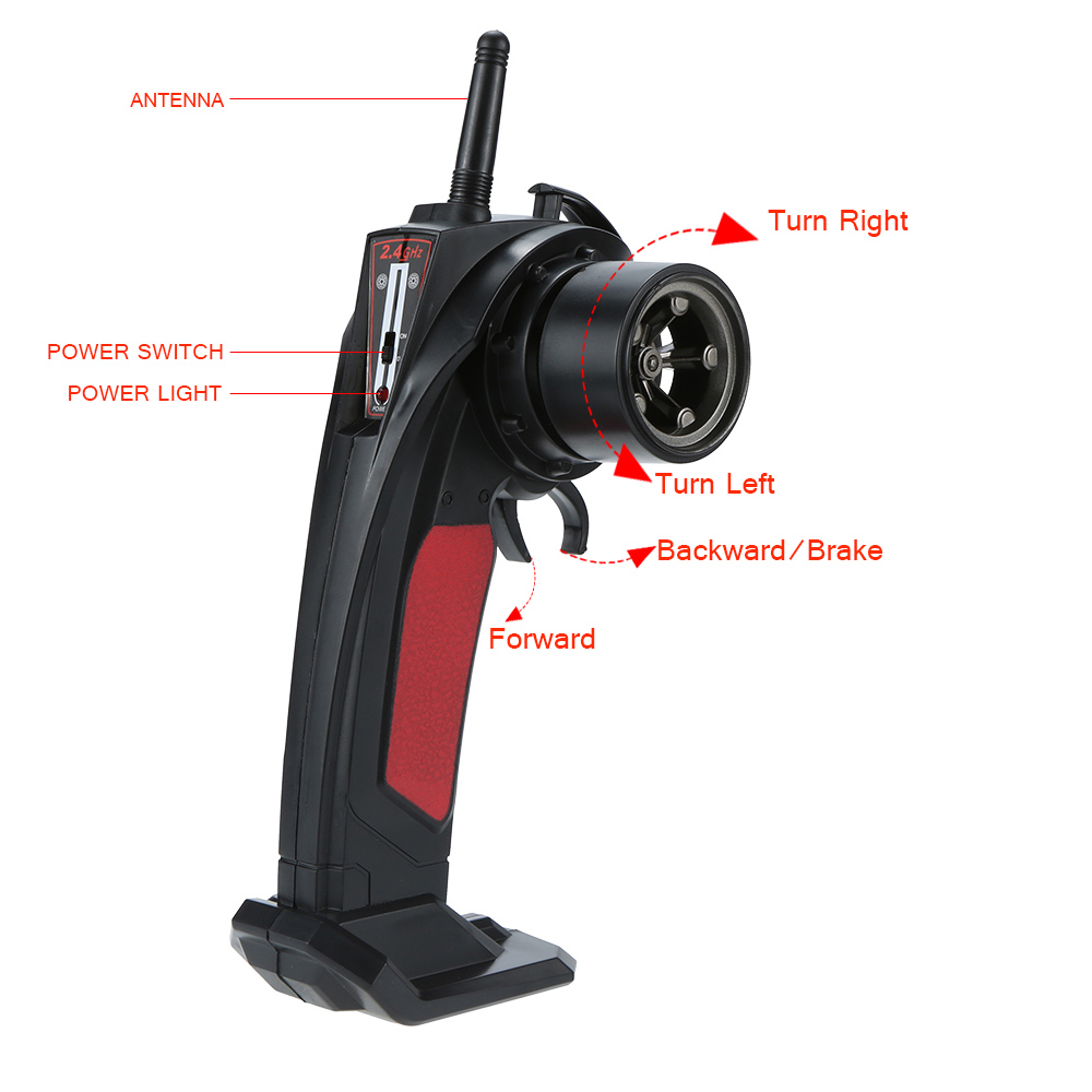 Transmitter: 2.4GHz 4CH forward/backward, left/right turn, 2speed