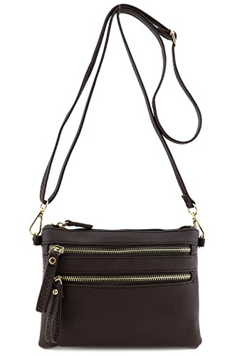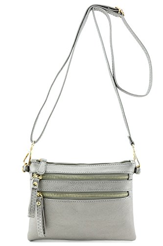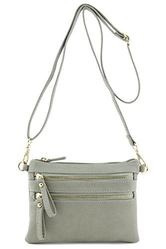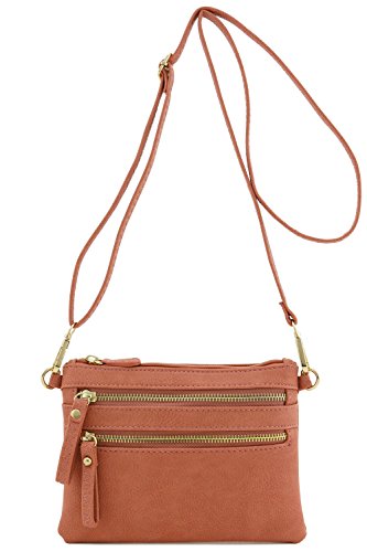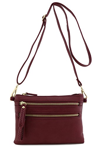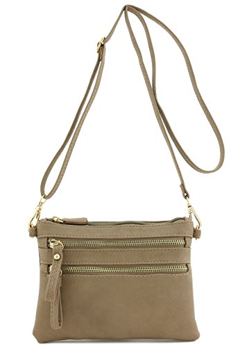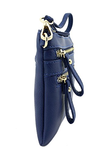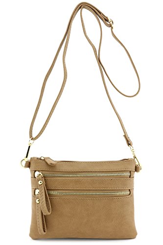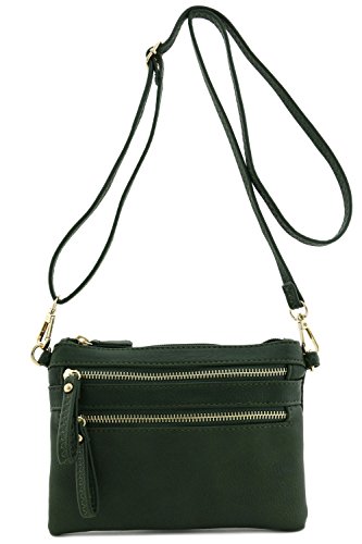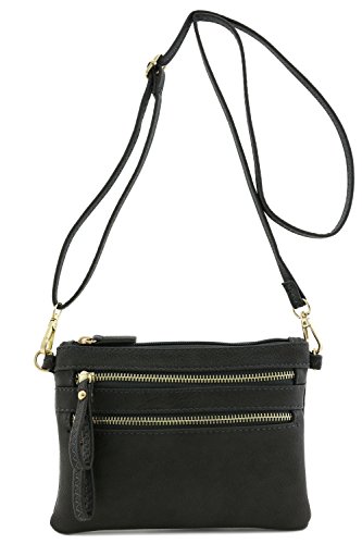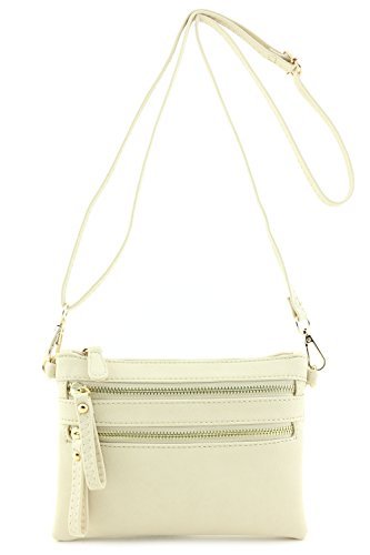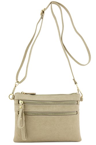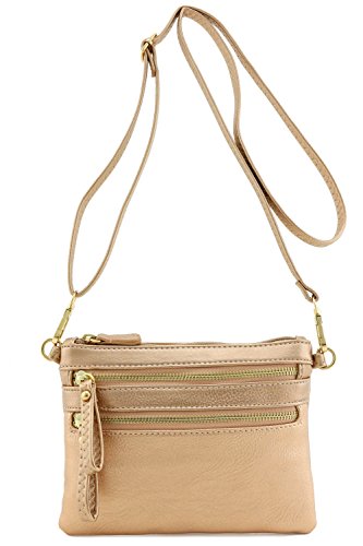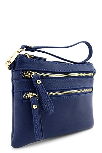 Multi Zipper Pocket Crossbody Bag, Total 3 zipper pockets at outside and 1 zipper pocket inside. It can be used as a wristlet purse or as a crossbody bag.