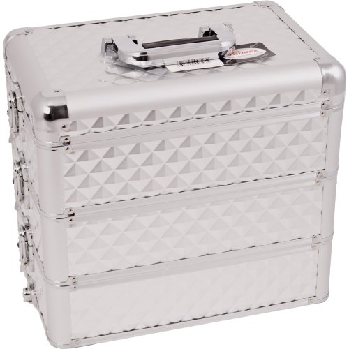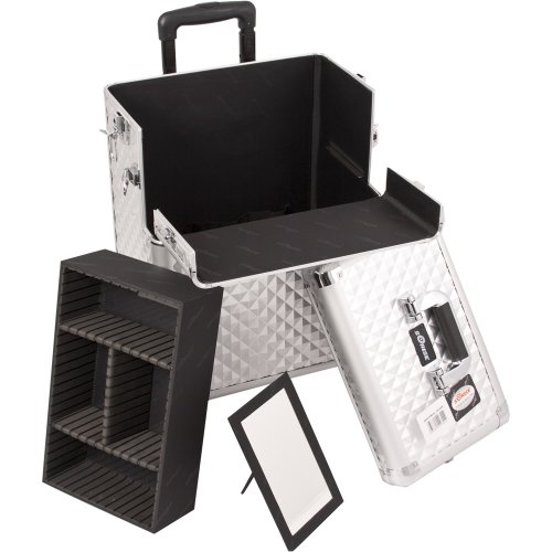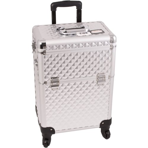 Sunrise Lovo 2-In-1 Rolling Makeup Case Professional Nail Travel Organizer Box, Silver Diamond, 23 Pound