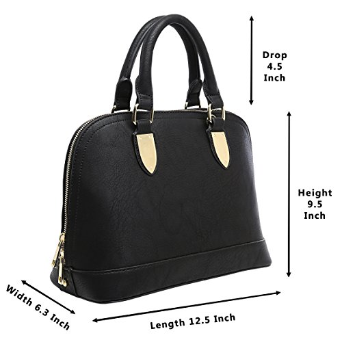 -. Feature : MATERIAL: High quality faux leather, lining: 100% polyester / FEATURES: Flat Base with Protective Metal Feet for Stability; Durable Gleaming Golden Hardware,Top Super Smooth Zipper Closure. / DIMENSIONS: 12.5"L x 6.3"W x 9.5"H; Handle Drop: 4.5", Detachable Shoulder Strap: 30" / INTERNAL: Comfortably holds an iPad Mini or a tablet 10"x8"x1" and under ; 1 Inside Zipper Pocket & 1 Interior Wall Open Pocket for Your Keys/ Cards/Phone / WARRANTY: We guarantee the best purchase experience for every buyer that chose us, should any dissatisfaction occurs, please contact with us for unconditionally return and refund
