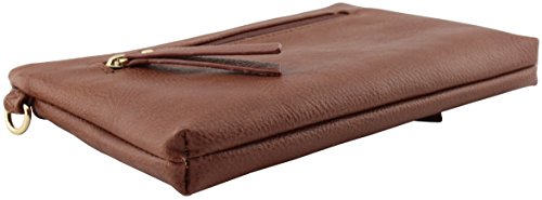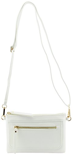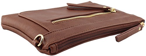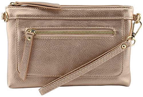 -. Feature : 8.75"(L) x 6"(H) x 1"(W) with gold tone hardware / Total 4 zipper pockets and 3 credit card slots / Removable and adjustable shoulder strap(26.75" drop max) / Removable wristlet strap / Soft and light weight