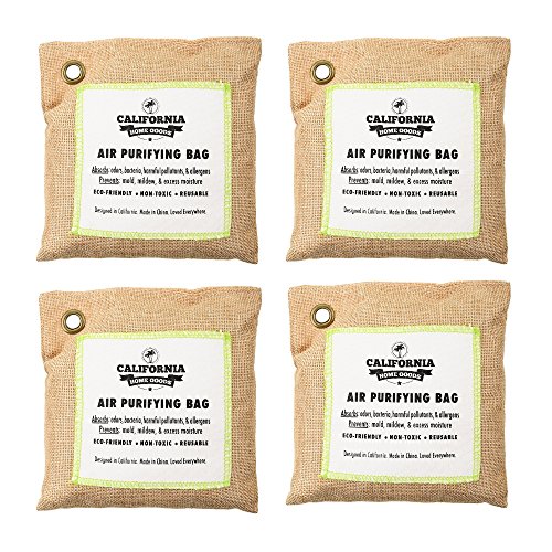 4 Pack - California Home 200g Activated Bamboo Charcoal Deodorizer Natural, Air Purifying Bags, Dehumidifier, Allergy-Free Filters, Odor Neutralizer for Home, Shoes, Car, Natural Colored