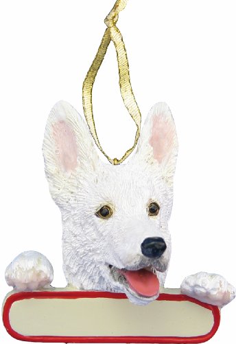 German Shepherd Ornament White "Santa's Pals" With Personalized Name Plate A Great Gift For German Shepherd Lovers