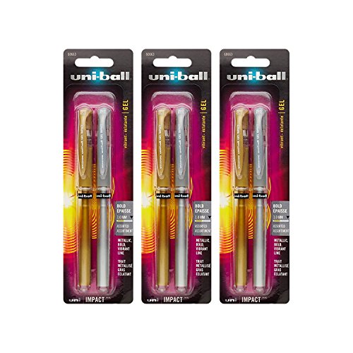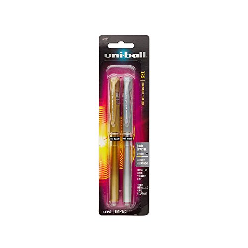 -. Title : Uni-Ball Gel Impact Roller Ball Pens, 1.0mm, Bold Point, Gold and Silver Ink, 6-Count