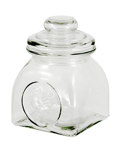 Grant Howard Rooster Embossed Square Bell Top Glass Jar, 24 oz.