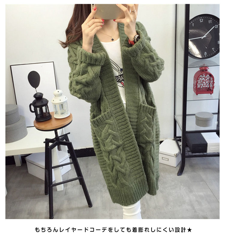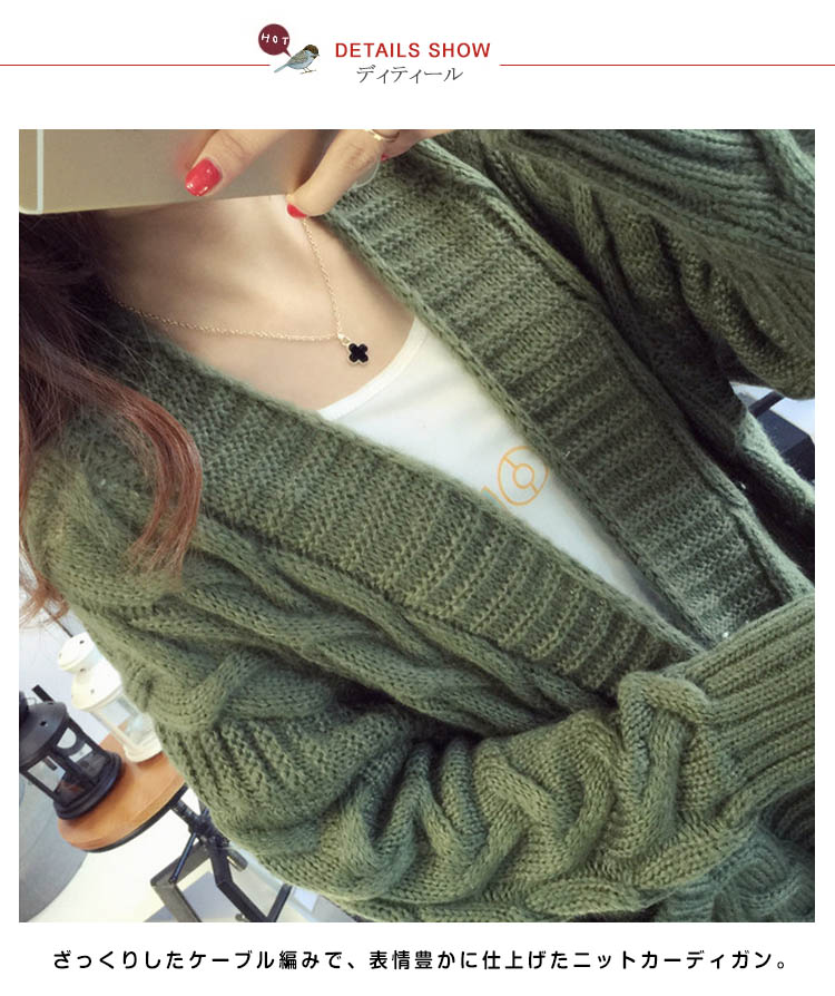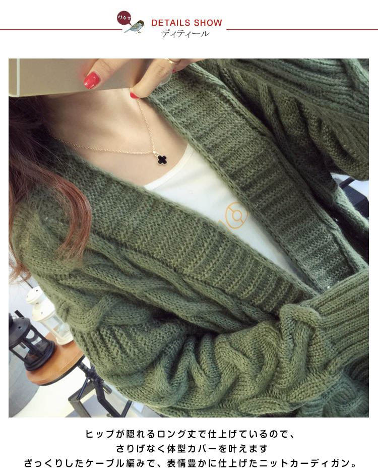 大人気のケーブルニットカーデが待望の登場★袖と裾はリブ仕様で着用を繰り返しても伸びにくい★もちろんレイヤードコーデをしても着膨れしにくい設計★ゆるっと包まれルックで愛されコーデが完成すること間違いナシ★