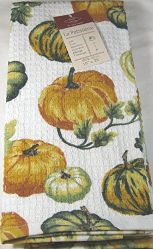 La Patisserie Plush Kitchen Towels 2 Pk Harvest Pumpkins 18" x 28" 100% Cotton