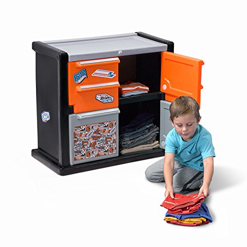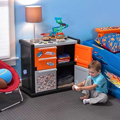 -. Title : Step2 Hot Wheels Race Car Dresser for Toddler Boys - Durable Plastic Chest Storage Organizer with Racing Decals