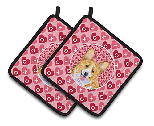 Caroline's Treasures Corgi Hearts Love & Valentine's Day Portrait Pair of Pot Holders SS4486PTHD, 7.5HX7.5W, Multicolor