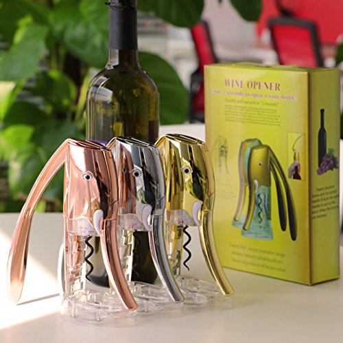 AIBIS Wine bottle opener elephant shape designed for Wedding ,Party ,Bar , Restaurant and etc Elephant -A symbol of Luck Power ! A good gift choice for your lover, father and Brothers Product Feature 1.2second quick wine opener-its Leverage Theory, Operating simply-push the lever up and pull the lever down. 2.Elphant Wine opener corkscrew:3 different colors available: Gold / Rose-gold / Silver. 3.Material - Zinc Alloy Nickel Alloy Spiral(food grade) 4.What you get -1pcs elephant wine bottle opener with foil cutter in a color box