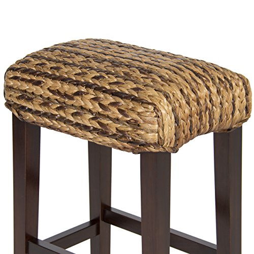 -. Binding : Misc. -. Brand : Best Choice Products -. Color : Brown -. EAN : 0810010027474 -. Feature : 5 inch thick seats are constructed with foam on the inside for extreme comfort-ability / Hand-woven in Indonesia with high-quality Seagrass fibers that are incredibly durable and able to support a weight up to 250 lbs. / Concealed with a moisture resistant coating, protecting them from soaking up water quickly / Supported by a mahogany wood frame and 4 legs to keep them standing uP.R.Ight / Product Dimensions: 18.5"(L) x 11.5"(W) x 30"(H) -. Label : Best Choice Products -. Manufacturer : Best Choice Products -. Model : SKY2300 -. MPN : SKY2300 -. PartNumber : SKY2300 -. ProductGroup : Home -. ProductTypeName : HOME_FURNITURE_AND_DECOR -. Publisher : Best Choice Products -. Studio : Best Choice Products -. Title : Best Choice Products BCP Set of (2) Hand Woven Seagrass Bar Stools Mahogany Wood Frame Bar Height -. UPC : 810010027474 -. Warranty : 60 day warranty