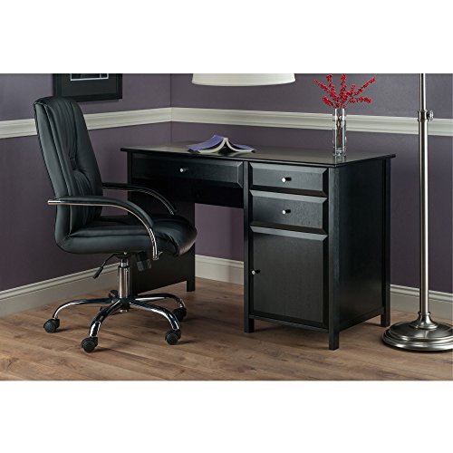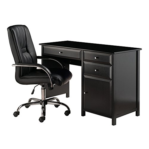 -. Binding : Kitchen -. Brand : Winsome Wood -. Color : Black -. EAN : 0021713222336 -. Feature : Overall desk size is 30.7"H x 47.2"W x 20.2"D. Leg clearance is 26.2"W x 25.2"H / Desk is made of solid and composite wood. Black faux leather chair. \ / Chair's seat height at lowest position is 19.6" and at the highest is 23.3" -. Label : Winsome Trading -. Manufacturer : Winsome Trading -. Model : 22233 -. MPN : 22233 -. NumberOfItems : 1 -. PackageQuantity : 1 -. PartNumber : 22233 -. ProductGroup : Furniture -. ProductTypeName : HOME_FURNITURE_AND_DECOR -. Publisher : Winsome Trading -. Studio : Winsome Trading -. Title : Winsome Wood Delta 2 Piece Set Office Desk with High Back Chair -. UPC : 021713222336