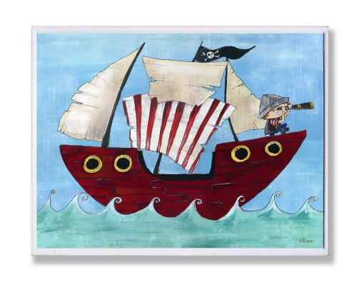 The Kids Room by Stupell Pirate Ship At Sea Rectangle Wall Plaque, 11 x 0.5 x 15, Proudly Made in USA