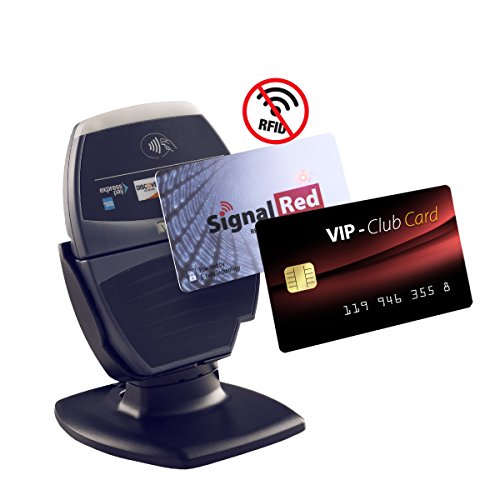 -. Feature : Security. RFID Blocking Card is powered by E-Field technology, which jams and scrambles RFID \ NFC signals, protecting your personal information from unauthorized scans. / Effective. Slide this one card into your wallet for instant protection to all your other cards. / Smart. LED light indicates that your SignalRed card is doing its job - blocking a scanner from reaching your RFID chips! / Compact. Credit card protector fits snugly in your wallet or purse for ultimate space-saving. / Verifiable. Download the "NFC TOOLS" app on your Android, and watch SignalRed do its job for yourself.