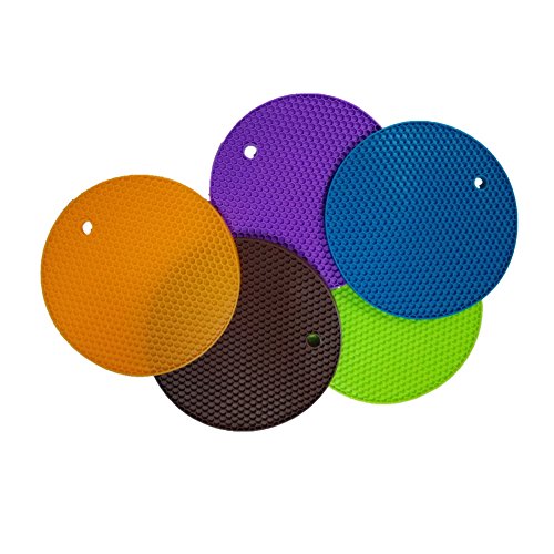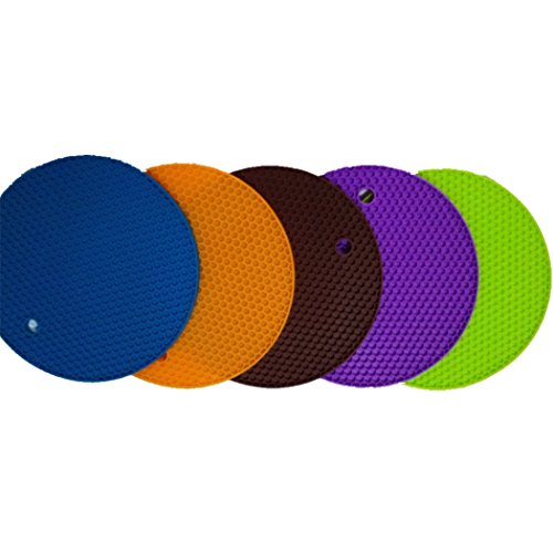 DERKER SET OF 5,PREMIUM MULTI COLOR SILICONE POT HOLDERS,NON-SLIP HIGH HEAT RESISTANT HOT PADS,NON SLIP TRIVET MAT,FLEXIBLE AND DURABLE PLACEMAT