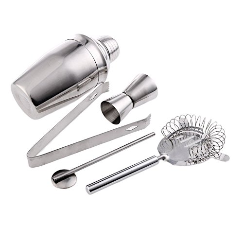 -. Feature : Cocktail making set ideal for beginners / Condition: 100% brand new and high quality / The Set Includes: Bar Spoon,Cocktail Strainer,1&1/2oz Jigger,Clip and 550ml Stainless Steel Cocktail Shaker / Perfect for Entertaining Guests, Parties and Ideal for Birthdays / Impress your friends with your stylish kit