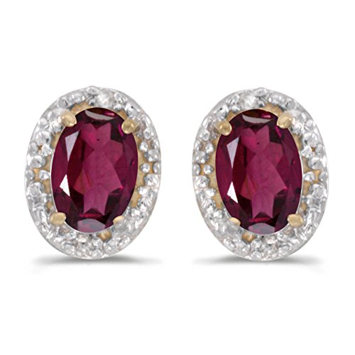 -. Title : 10k Yellow Gold Oval Rhodolite Garnet And Diamond Earrings
